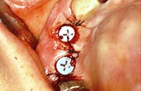 歯茎にインプラントを埋め込むのに十分な骨の厚み、幅がない場合に、当院では人工骨を移植します。